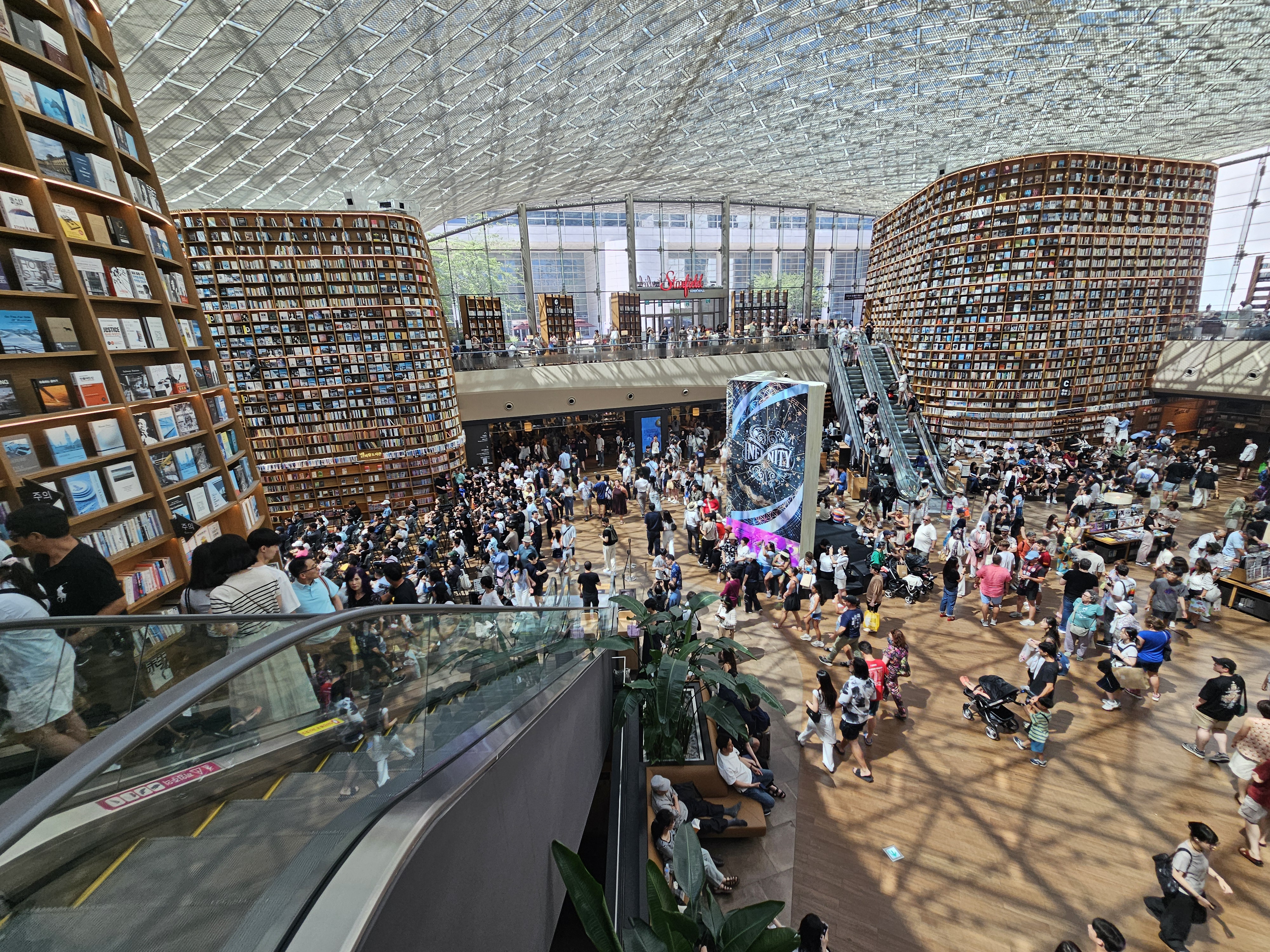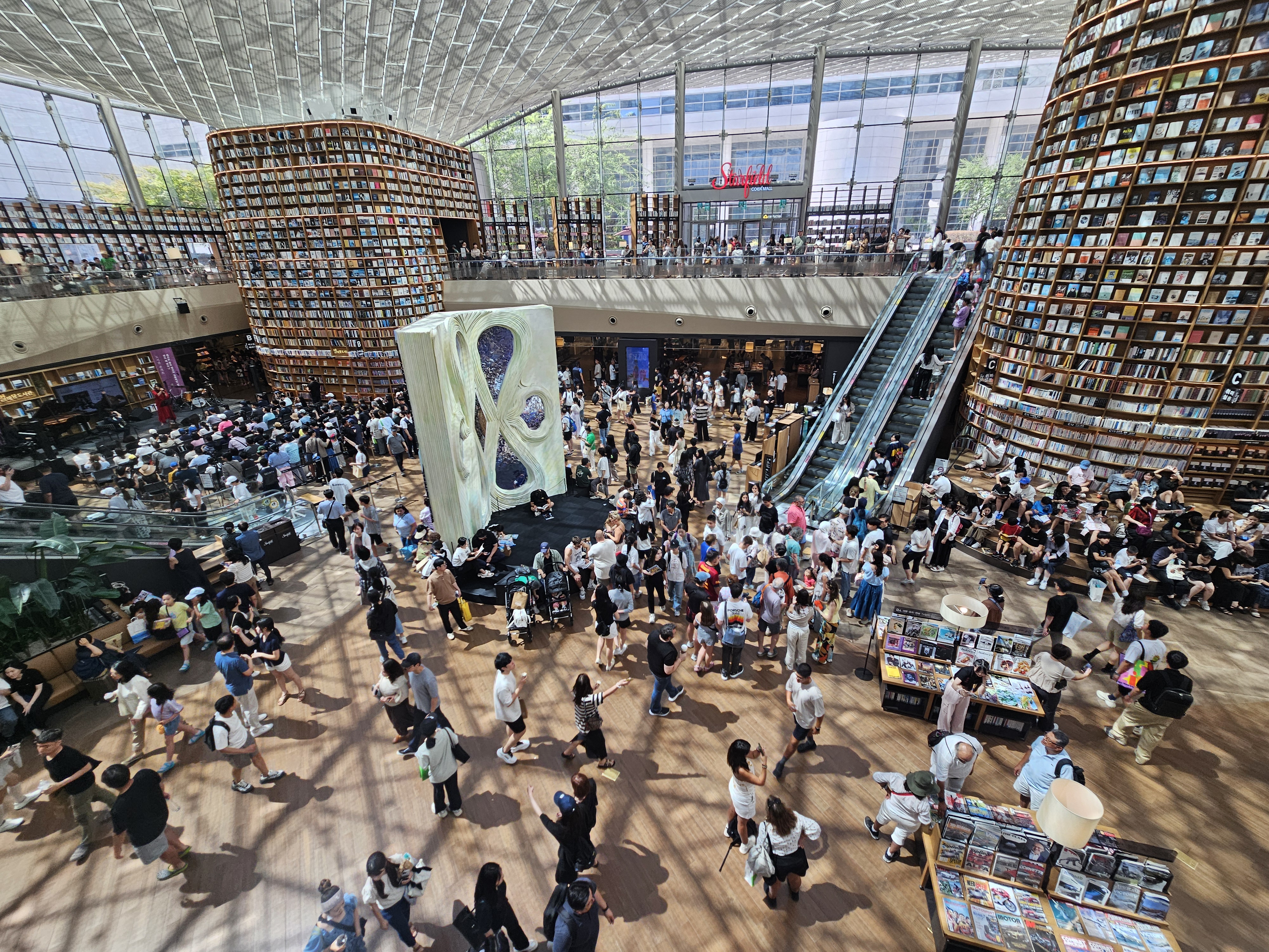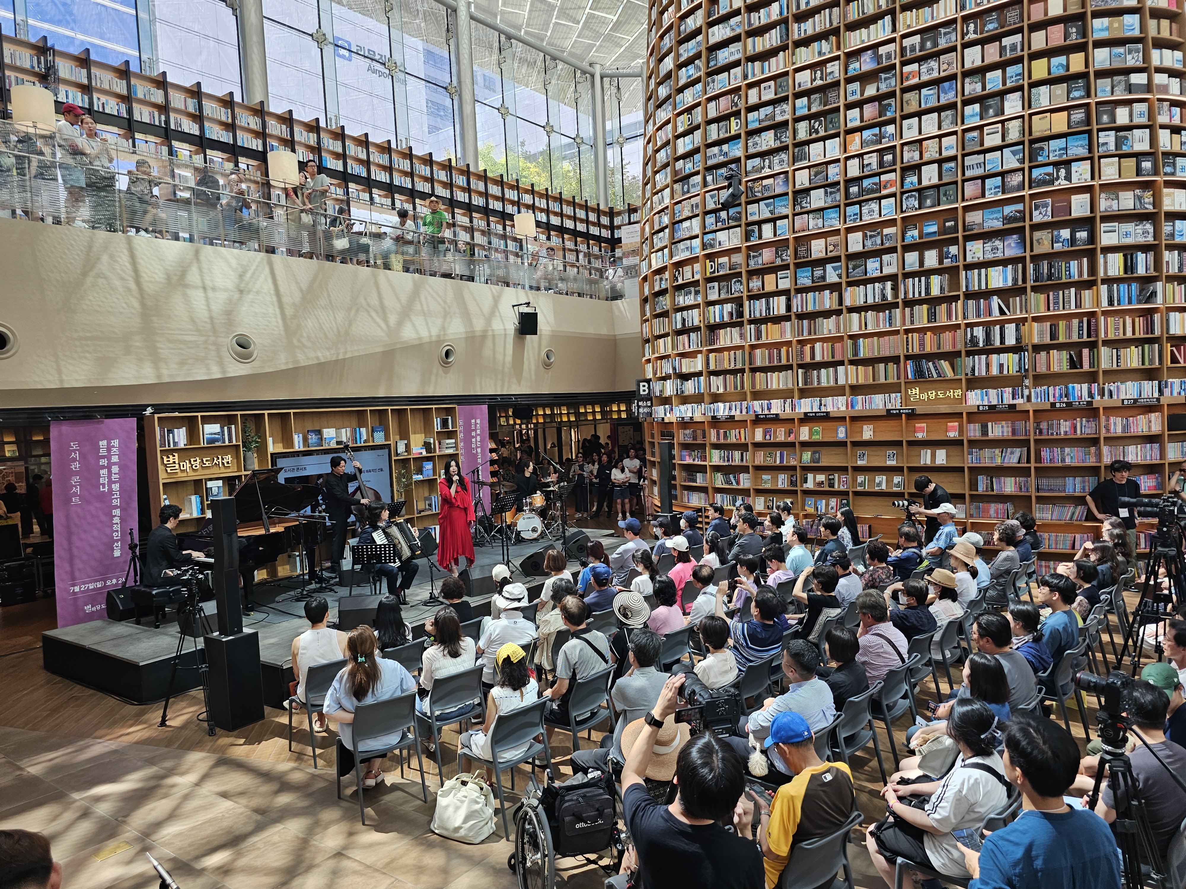 별마당도서관은 서울 강남구 코엑스몰 내부에 위치한 대형 공공형 도서관 공간입니다. 2017년에 오픈했으며, 특히 독특한 인테리어와 개방감 있는 공간 덕분에 서울의 인기 명소 중 하나가 되었습니다.