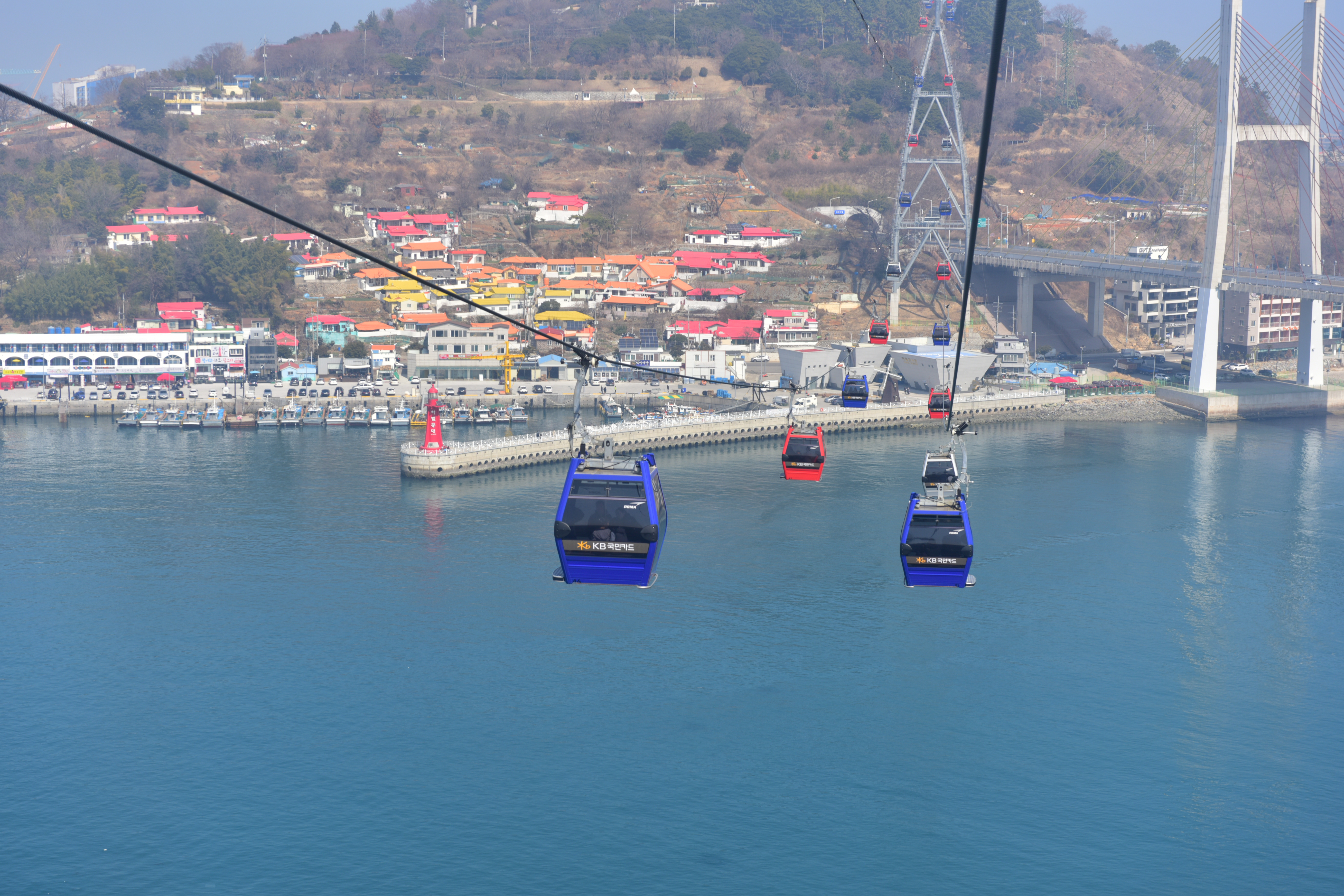 여수 겨울 여행 중 여수해상케이블카를 탑승하면 시원한 바닷바람과 함께 탁 트인 전망을 즐길 수 있어 잊지 못할 추억이 될 것입니다.